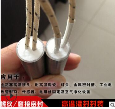 一般用于高溫用途,耐溫可到500度,高的可到1500度。比如高溫套接密封,法蘭連接處高溫密封,這種無機高溫膠往往需要加熱固化,強度不算高,做一般的填充密封和固定定位的較多。很多高溫傳感器、高溫過濾器、單頭電熱管、電廠焚燒爐、冶煉廠高溫爐等應(yīng)用較為廣泛。例如電熱管封口使用的: